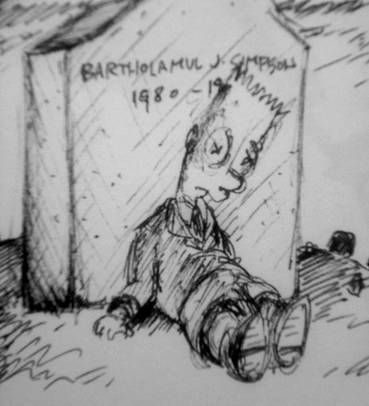 La familia comenzó a llorar de nuevo. Eventualmente se detuvieron, viendo fijamente el cadáver de Bart. La cámara se enfocó en el rostro de Homero.