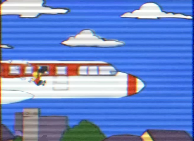 El episodio trataba sobre los Simpson yendo a un viaje de avión, y casi al final de la primera parte, cuando el avión estaba a cerca de 20 o 30 metros en el aire, Bart rompió una ventana de éste y fue succionado hacia afuera.