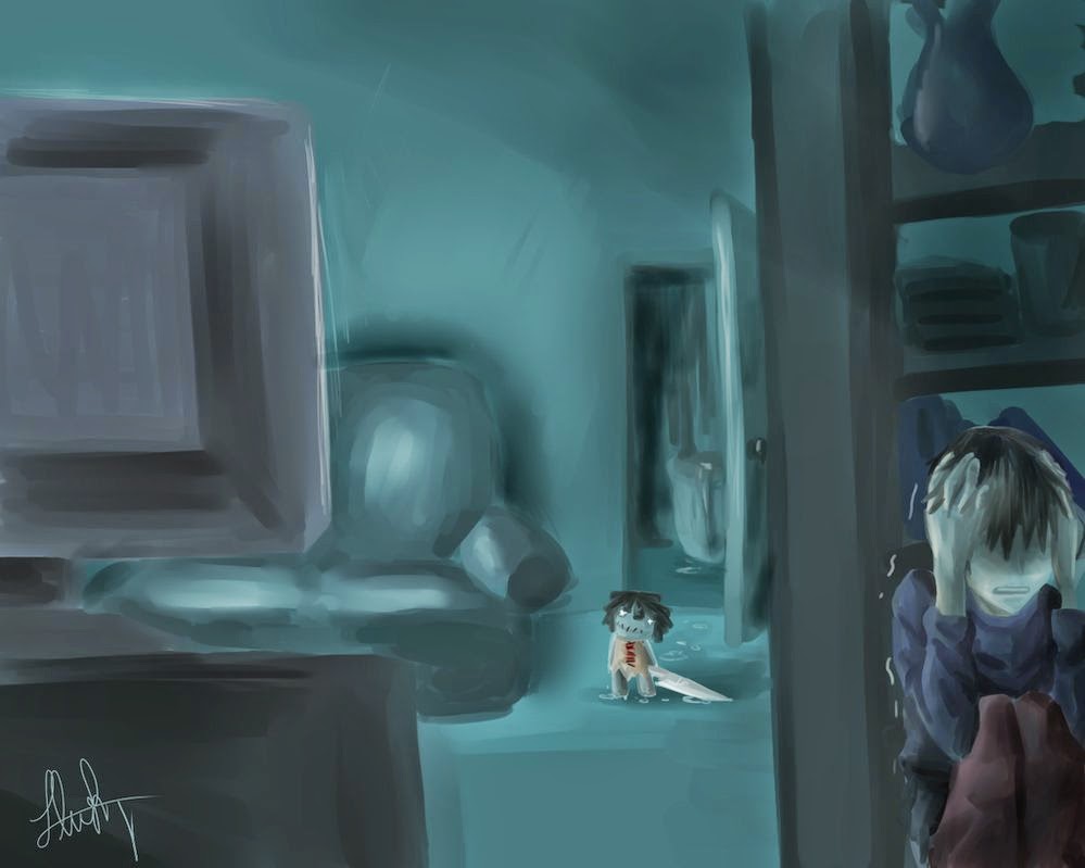 -Verter media taza con agua salada en la boca pero no beberla, sólo mantenerla ahà (Si sales del escondite sin el agua salada, podrÃas encontrarte con "algo que ronda por ahÃ" en su casa y podrÃa hacerte daño. Aparentemente la forma de sentir la presencia de ese "algo que ronda por ahÃ" es ver qué sucede con la TV), y salir del escondite y empezar a buscar al muñeco. El muñeco no necesariamente estará en el baño. Pase lo que pase no escupa el agua salada que está en su boca.