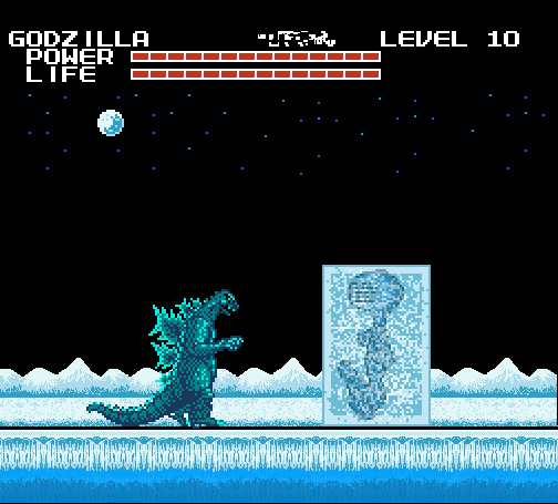 Después de pasar el nivel, moví a Godzilla al icono del castillo azul. Empecé el nivel y apareció un título: UNFORGIVING COLD (FRÍO IMPLACABLE)