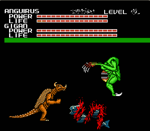 Debo mencionar que al jugar con Anguirus, el indicador de "Nivel" se glitchea. A juzgar por la vida y la energía, diría que era nivel 10.