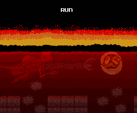 Para esta persecución probé a Anguirus, ya que su ataque de bola de pinches me permitía avanzar mas rápido que con Godzilla o Mothra. La persecución comenzó como las primeras 2, excepto que había un río de sangre debajo de la tierra. Estaba empezando a cogerle el, y la velocidad extra me ayudó a obtener una ventaja sobre el monstruo rojo. Sobre todo porque no tenía que preocuparme por un límite de potencia, y podía seguir rodando sin parar.