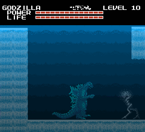 Pero la bola de pinches no era su única habilidad especial. Cuando presionabas Start, disparaba un rayo de energía de su boca. Se parecía al ataque sonar de Titanosaurus, y si era un hack puede que hubiera sido inspirado por el ataque Rugido de los juegos de lucha de Godzilla de Atari.
