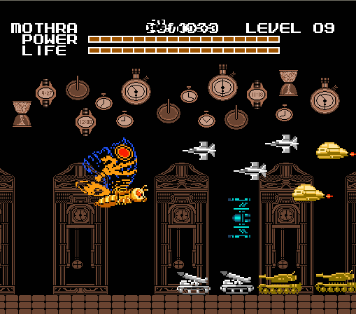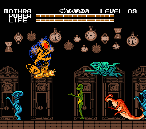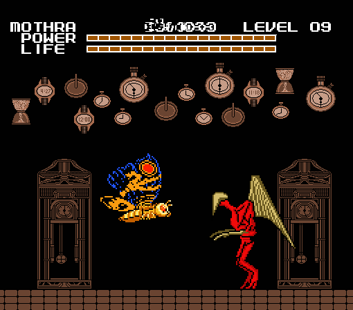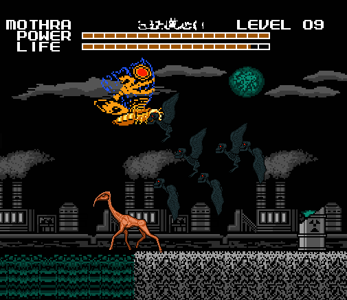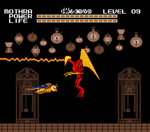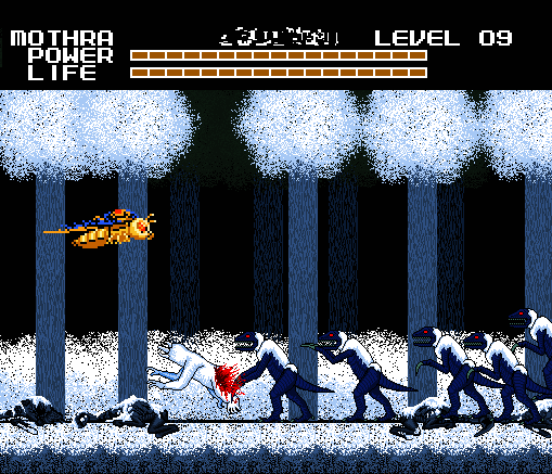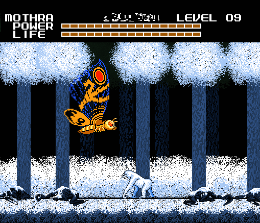 A nadie le gustaba jugar con Mothra en este juego. Y había buenas razones para ello, cada vez que Mothra es golpeada se va al lado izquierdo de la pantalla, y es una inútil luchando porque sus ataques son muy débiles. El único beneficio de Mothra era que podía volar sobre los obstáculos de algunos niveles.