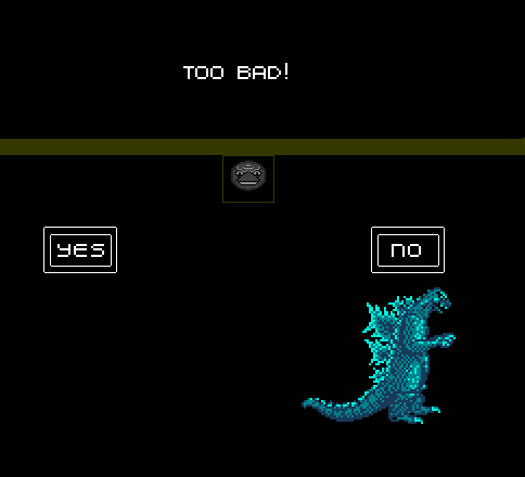 Fui llevado de vuelta al mapa, y me sobresaltó ver que Godzilla y Anguirus habían desaparecido del tablero, dejando sólo a Mothra. Cara me había jodido. No hace falta decir que yo estaba cabreado. Pero no se podía hacer nada, y apostaría a que incluso si hubiera respondido "Sí", me habría quedado con Mothra de todos modos. Cara da, y Cara quita.