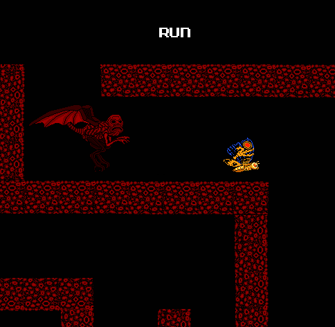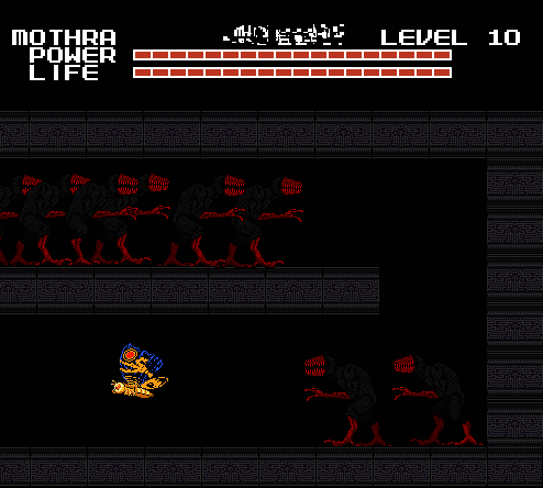 Inmediatamente salí de mi "aturdimiento" de unos segundos antes. Todo había sido oscurecido de manera que lo único que podía ver era el sprite de Mothra. No podía saber a dónde iba y terminé frenéticamente chocando con las paredes. Escuché un ruido, que sonaba como una multitud corriendo por un pasillo.
