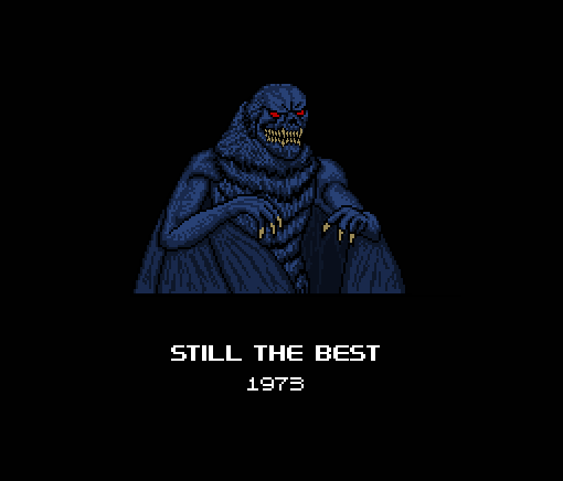 Cada vez que finalizaba una etapa o derrotaba a un jefe con Solomon, aparecÃa esta imagen en pantalla. No tenia ni idea de que se referÃa con "TodavÃa es el mejor 1973". Ni la fecha ni la frase tienen algún sentido o significado para mÃ, y eso que he pasado mucho tiempo pensando en ello.
