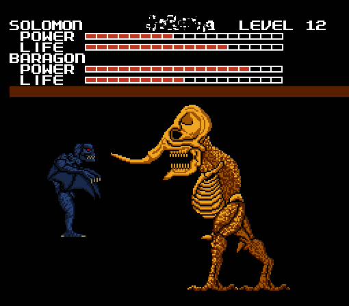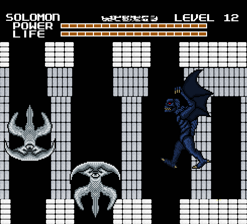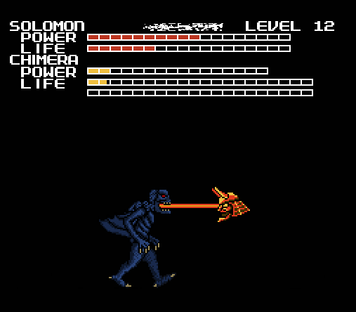 Solomon era un monstruo interesante, por decir menos. Era capaz de volar y lanzar un rayo de calor, lo cual resulto ser muy útil. También podÃa patear y acuchillar con sus alas, pero no podÃa esquivar.