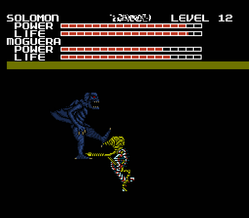 La música para esta pelea fue el tema de pelea de Gezora. Fue durante esta pelea que se dio cuenta de que Salomón es dominado. Me di cuenta de que una sola acuchillada bien dirigida podia acabar hasta con 4 de las barras de vida del enemigo.