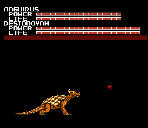 Así que comencé la lucha contra Destroyah con Anguirus, y la música era la misma que con Ghidorah. Cuando comencé la pelea estaba en forma microscopica. Después de 1 golpe cambio a juvenil.