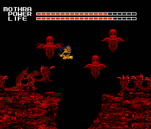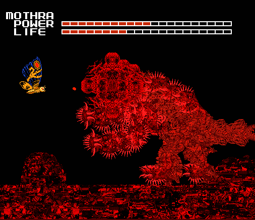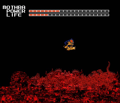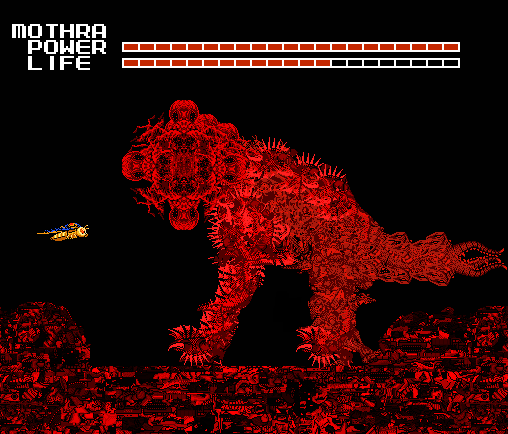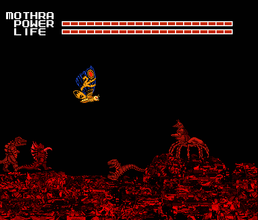 Como sospechaba, en el nivel hicieron gráficos de letras desordenadas. Y Mothra justo como Godzilla también fue reducido a la mitad de su tamaño. Empece a sospechar que todos los niveles de Zenith serian así.