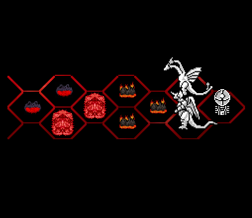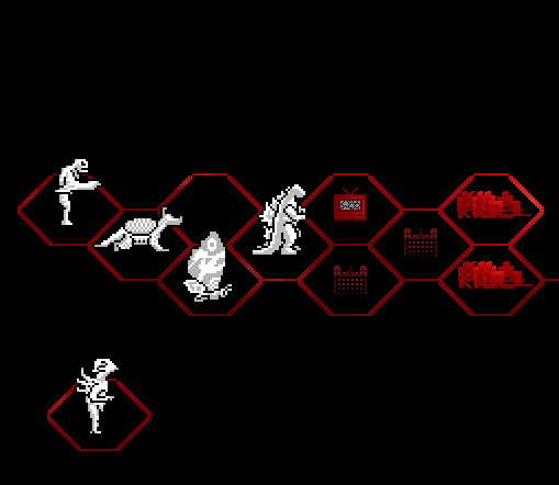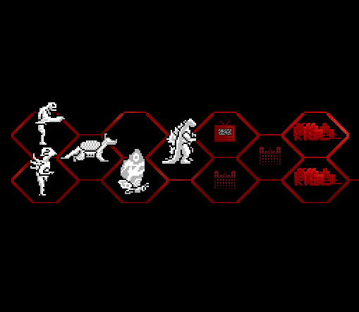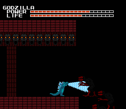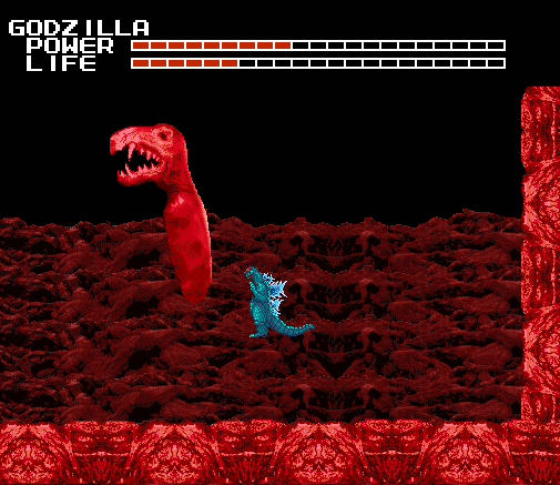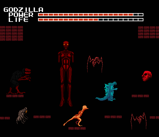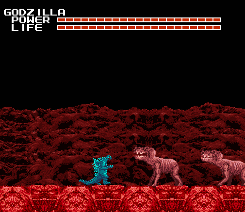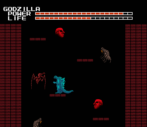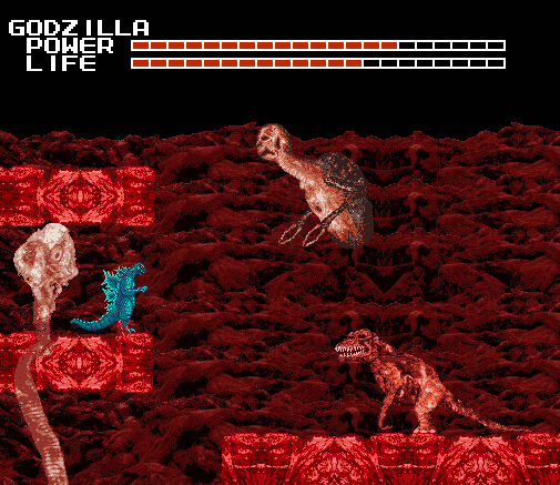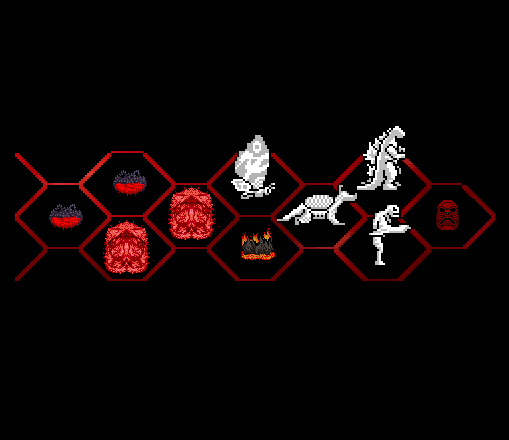 Los enemigos eran Destroyah y Ghidorah. Pero a juzgar por el icono supe que era un Ghidorah diferente del original, de pie en el suelo en lugar de volar. El grotescamente detallado icono rojo rosado también me llamo la atención. No podía decir lo que se suponía que era y tuve miedo de averiguarlo.