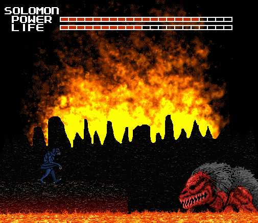 Así que tuve que volar para esquivar las llamas y luego acercarme lo suficiente para pegarle con un rayo en la cara. Haciendo que se caiga de espaldas. Si no tropezar hacia atrás, se habría mantenido en movimiento izquierda hasta que se vio obligado a Salomón en la lava, ya que no había más terreno a su alcance.