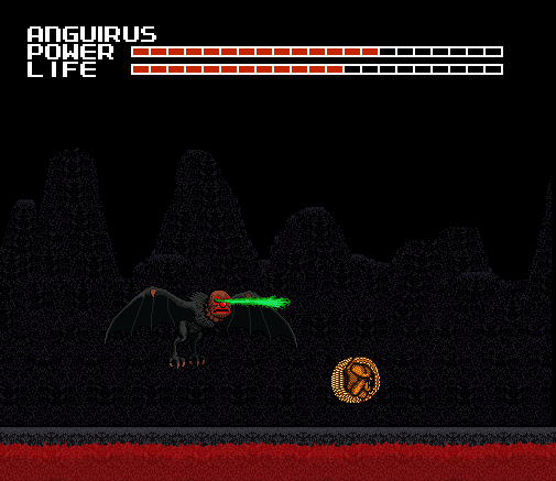 Al final de este túnel, había algunas plataformas que flotaban sobre la nada. Así que aterrice hacia la izquierda de la pantalla y después algo cayo desde arriba. Se veía como el ángel del cementerio solo que ahora era rojo y tenia una cara de calavera.