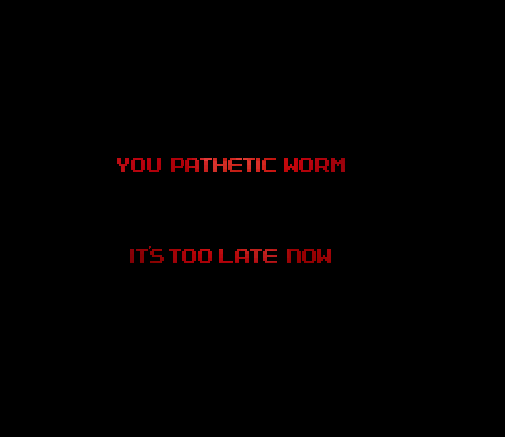 Vi y experimente muchas cosas desagradables en este punto, pero el dolor fue lo que trazo la linea. Si estarÃa decepcionado de no ver el final, pero el riesgo no valÃa la pena. Estaba a punto de levantarme para tomar una foto y apagar la Nes cuando me di cuenta de algo.