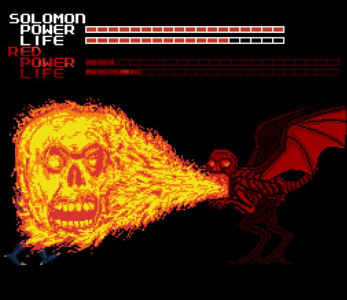 Y a medida de que se acercaba el final, rojo volteo su cuerpo para hacer frente a la pantalla, voló hacia arriba y luego golpeo hacia abajo en un intento de aplastar a Solomon.